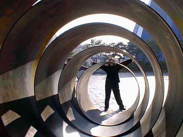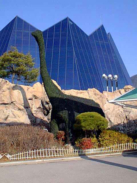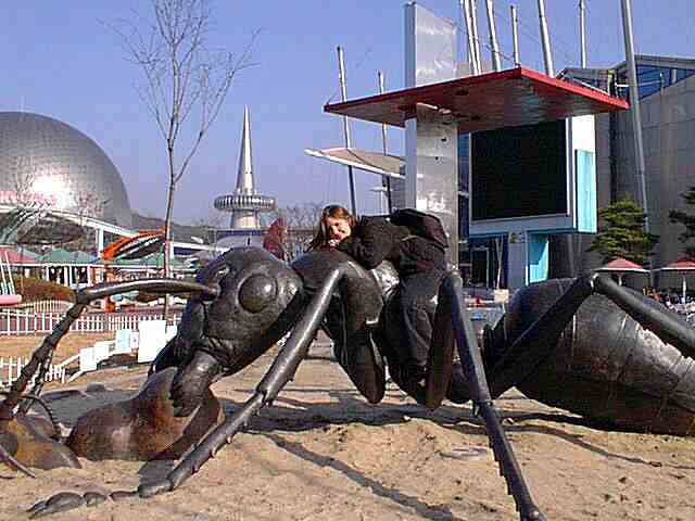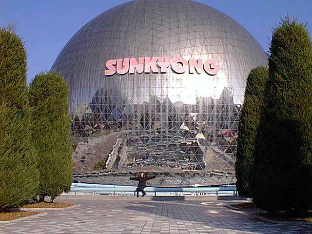 Taejon is proud indeed that it was the 1993 host of EXPO, the World's Fair. The site is still open, though of course tourist traffic isn't quite what it used to be. Nonetheless, the place has lots of cool looking pavilions and a full-scale amusement park going for it, so Cheris and Rob have visited several times. Here's a gallery of pictures of the buildings, sculptures (both metal and shrubs), and Cheris' first bungee-jump...