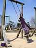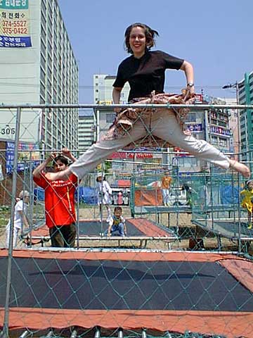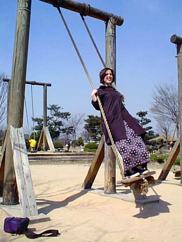 Photography wasn't allowed inside the exhibitions, but Cheris managed to create a photo-op on the traditional Korean giant swing on the grounds. |