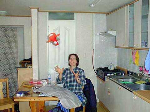 We live in Hwasoon, about 20 minutes south of Kwangju. Last year we were crammed into a tiny studio apartment, so this year's 2-bedroom place feels like quite a palace. Chosun University provided the apartment, which is located in a typical Korean high-rise and is less than 3 years old.