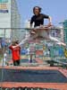 At the trampoline park across from our apartment complex, Brian jumped for joy at seeing us again... |