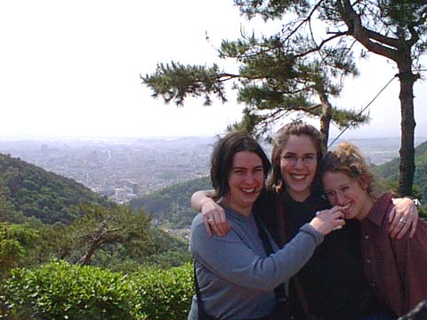 Verena and Dawn were so impressed with Cheris's kung-fu that they hugged her continuously while we headed into Kwangju and took a cable car ride to a peak at Mudeungsan, a mountainous national park located on the edge of the city. |