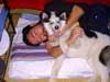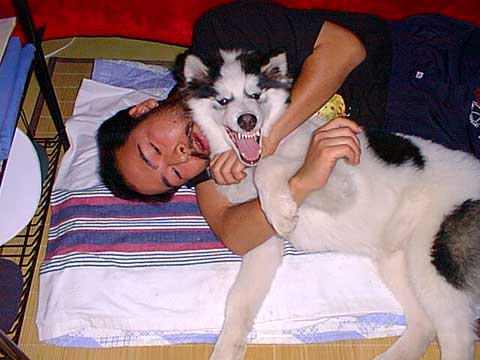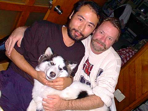 Sometime last summer we had a great dinner at the home of our colleague Mike and his roommate Harry. They've got a great dog, too, a Siberian husky called Akie. Here are some pics from that memorable evenin'...