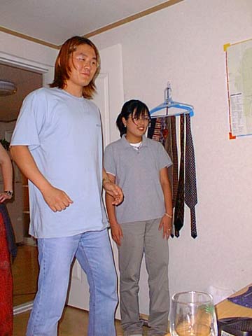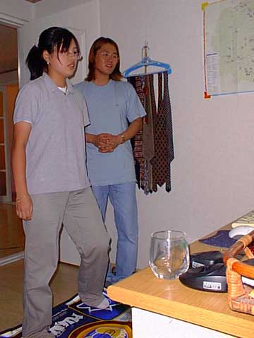 In July, we threw a little party at our place for some of Cheris's students. Here are Na Hye-ju and classmate Seong-yun taking a crack at the computer dance game after a few glasses of wine. |