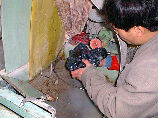 Jade carving is commonly associated with China, and for good reason. We visited a jade factory and were amazed to see how effortlessly the craftspeople could coax a Buddha, animal, or other statue out of a hunk of raw jade. Here are two shots of those craftspeople hard at work. |