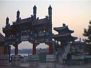 Built in the 1700s under the Qing dynasty, the Palace revolves around the exquisite man-made Kunming Lake. The place was merely a summer playground for Emporers and Empresses, and though it has fallen into disrepair and been rebuilt several times, its present condition is nothing short of amazing. We marveled at the painting, sculpure, and architecture on the site's buildings and "long corridor" along the river as the sun went down behind the lake. |