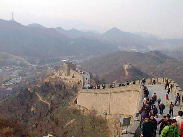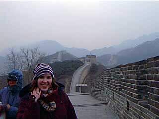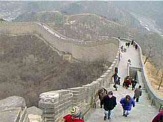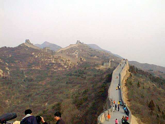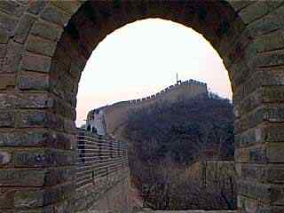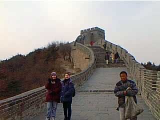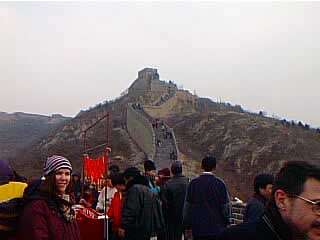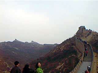 We went to Badaling, the most touristy (and thus the best-restored) part of the wall, so the vendors were all over us like ants on a picnic blanket, but it didn't matter much: hiking along the wall, looking at the rolling hills of the Chinese countryside, brings on an unforgettable feeling, but one that's difficult to describe. Let's just let the pictures speak for themselves. By the way, any unfamiliar folks in these shots are members of our tour group or other friendly travelers that we chatted with while hiking around. |
