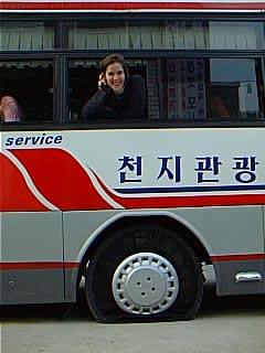 Our tour bus suffered a flat tire on the way home, but it turned out to be one of the most enjoyable breakdowns ever. Our gracious tour guide made up for the inconvenience by buying us all dinner and ice cream while we waited for a spare. |
