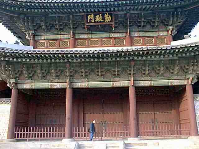 We arrived at Kongbukkung Palace, an ancient capital complex in Seoul, a bit too late to get inside, but here's Rob dwarfed by the palace gate. |