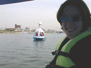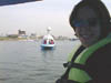 | With time to kill and beautiful weather, we tried out the ridiculous swan-shaped paddle boats on the river running through town. |