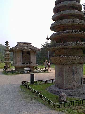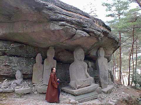 ![]() Not far from our home in Hwasoon is a temple known as Unjusa. Besides being in a typically beautiful spot for a temple, it has a rather unique legend attached to it. Long ago, some superstitious Koreans decided that the peninsula was unbalanced, with more mountains in the southeastern areas than the southwest. To prevent the country from capsizing, thousands of stone Buddha statues and pagodas were erected in the southwest. Unjusa was apparently one of the pivotal balance points, because at one point it boasted the largest amassing of pagodas and statuary in the country. Despite periodic sackings by the Japanese, Unjusa still has an impressive collection. We headed over there one overcast Saturday afternoon with our former teaching colleague from Taejon, Cho Sang-mi, who was visiting for the weekend.
